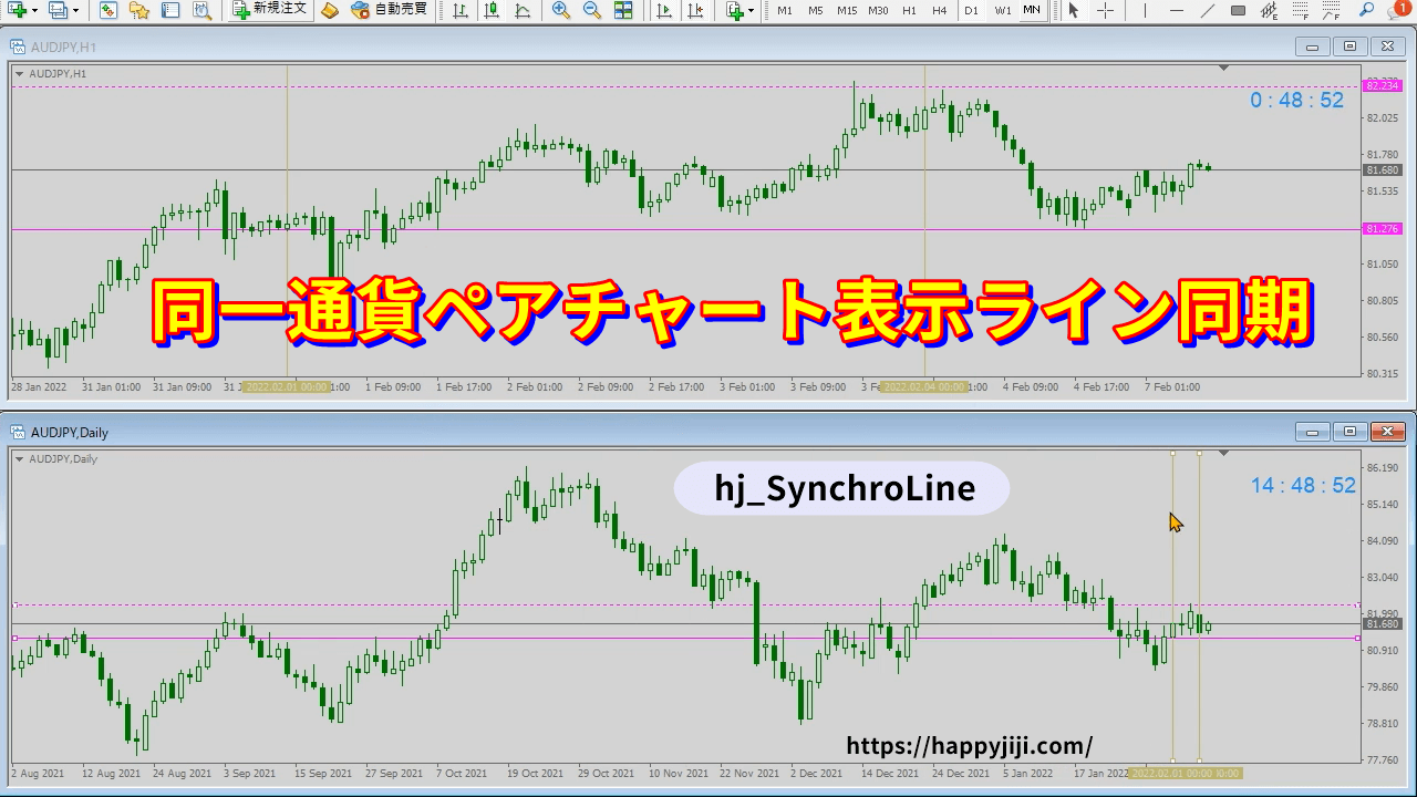 hj_SynchroLine-100 2022.02.08 [featured_image] ダウンロード Download is available until [expire_date] バージョン ダウンロード 0 ファイルサイズ 24.00 KB ファイル数 1 投稿日 2022年2月8日 最終更新日時 2022年2月8日 hj_SynchroLine-100 仕様はこちら 同一通貨ペアチャート内ライン・レクタングル同期インジケーター水平ライン、垂直ライン、トレンドライン、の3種のラインとレクタングルを同一通貨ペアチャート間で同期させるインジケーター|色、スタイル、位置を同期|背景として表示パラメーターに対応。チャートプロパティ「チャートを前面に表示」が優先される